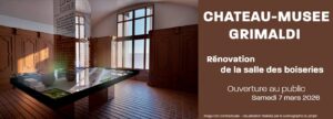Château fort du XIVe siècle transformé en petit palais à l’italienne au XVIIe siècle, les plafonds peints, le dallage d’ardoise ou les balustres de marbre rappellent cette longue période où le château appartenait aux Grimaldi. Classé monument historique en 1937 et devenu musée municipal, la ville assure sa mise en valeur grâce à un plan pluriannuel de travaux, aujourd’hui piloté par Antoine Madelénat, Architecte en chef des Monuments Historiques, sous le contrôle de la Direction Régionale des Affaires Culturelles (DRAC).